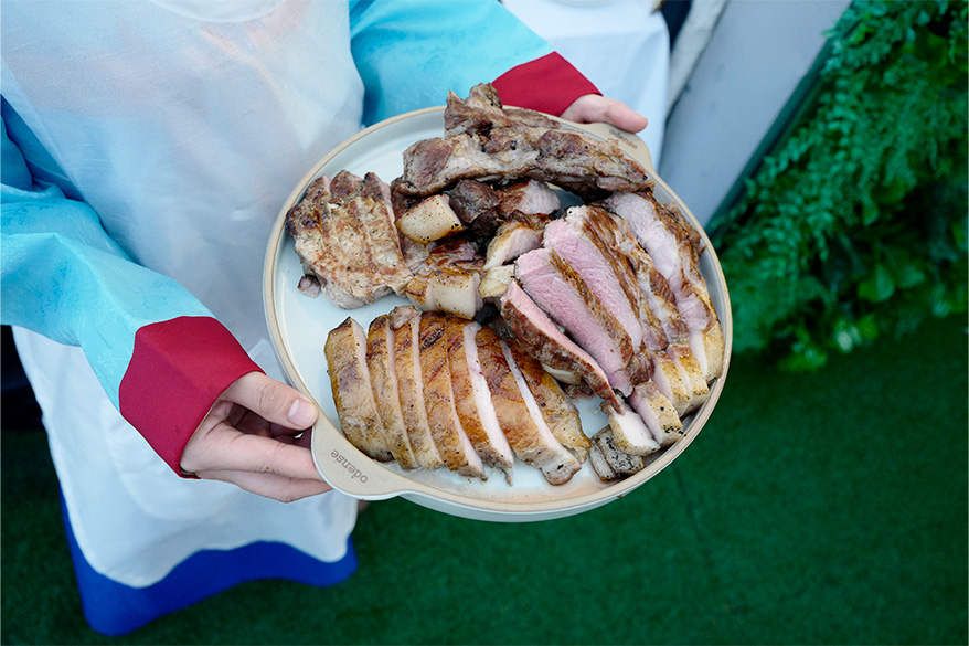 이렇듯 허물없는 모습을 보여주는 것이 해외와는 다른 한국식 접객의 모습이고, 이런 친근함을 다양한 컨셉의 식당에서도 활용할 수 있는지, 이탈리안 레스토랑 갈리나 데이지의 박누리 셰프가 팔을 걷어붙이고 선보였다. 좌식 문화였던 조선시대의 역사를 더듬어 모두가 바닥에 둘러앉아서 전립투골에 각종 야채를 넣어 끓이고, 박누리 셰프가 호호 불어 나눠 담은 국물 요리를 나눈다. ‘이모’ 문화에 대한 솔직한 견해와 장단점 의견을 나누는 와중에 한복까지 갖춰 입고 직접 손을 내미는 박누리 셰프 덕에, 이탈리아 할머니의 푸짐한 손맛과 우리나라 ‘이모’의 손맛이 겹치며, 웃음이 넘치는 체험의 시간이 만들어졌다.