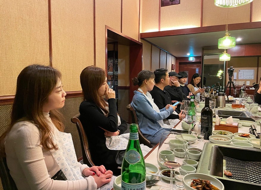 외국인 고객에게 다가가는 한국식 구이 문화는 결국 ‘음식’뿐 아니라 종합적인 경험이라는 것에 역시 모두의 공감을 나눴다. 이에 고깃집에서 어떤 복식을 갖추고 어떤 앞치마를 입으면 한식 문화 이미지를 만드는 데 도움이 될지, 한세엠케이 김지원 대표의 의견도 나눴다. 보해양조의 임지선 대표는 어떤 술을 곁들이면 고깃집의 분위기도 올리며 고기의 맛도 더 풍성하게 할 수 있을지 얘기하며 과실주인 매실주의 매력도 피력한다. GQ의 전희란 기자 또한, 어떤 플랫폼에서 어떤 콘텐츠를 소개했을 때 외국인에게 가장 유용하게 사용될 수 있을지에 대한 고민이 필요하다고 전한다.
